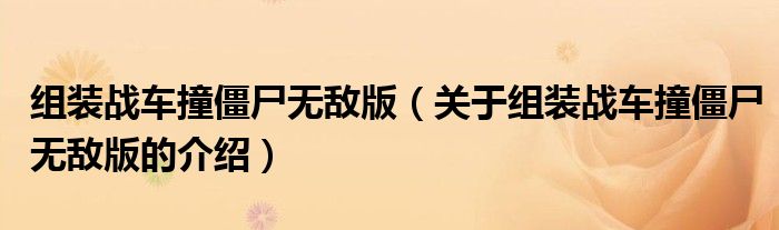 组装战车撞僵尸无敌版(关于组装战车撞僵尸无敌版的介绍)