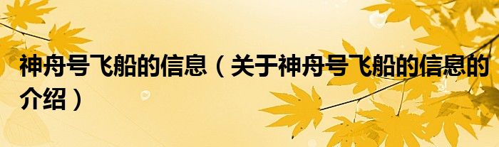 神舟号飞船的信息(关于神舟号飞船的信息的介绍)