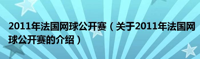 2011年法国网球公开赛(关于2011年法国网球公开赛的介绍)