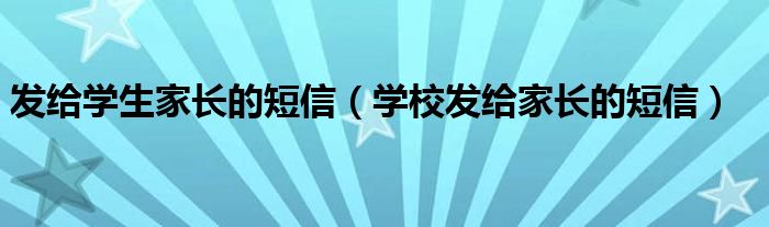 关于发给学生家长的短信,学校发给家长的短信这个很多人还不知道,今天菲菲来为大家解答以上的问题,现在让我们一起来看看吧!