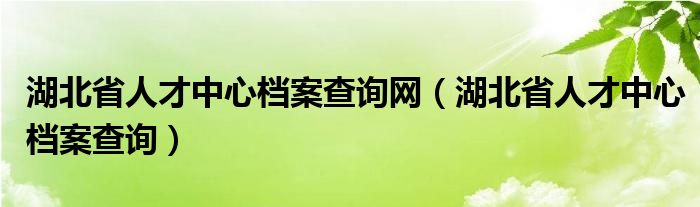 湖北省人才中心档案查询网(湖北省人才中心档案查询)