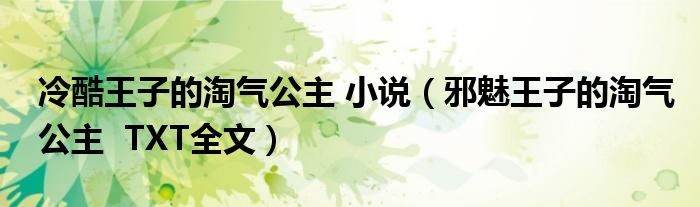 冷酷王子的淘气公主 小说(邪魅王子的淘气公主 TXT全文)