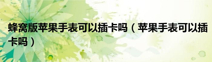 大家好,小晋来为大家解答以下问题,关于蜂窝版苹果手表可以插卡吗,苹果手表可以插卡吗很多人还不知道,今天让我们一起来看看吧!