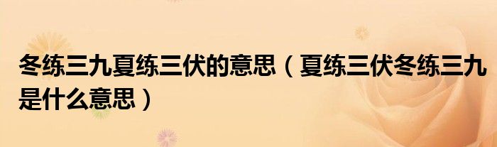 关于冬练三九夏练三伏的意思,夏练三伏冬练三九是什么意思这个很多人还不知道,今天菲菲来为大家解答以上的问题,现在让我们一起来看看吧!
