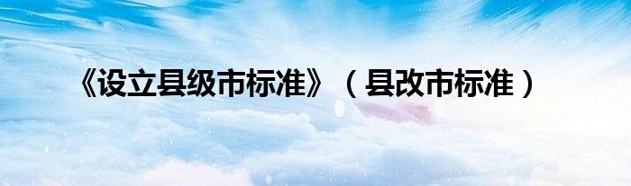 关于《设立县级市标准》,县改市标准这个很多人还不知道,今天菲菲来为大家解答以上的问题,现在让我们一起来看看吧!