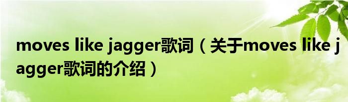 大家好,今天小乐来为大家解答以上的问题。moves like jagger歌词,关于moves like jagger歌词的介绍很多人还不知道,现在让我们一起来看看吧!