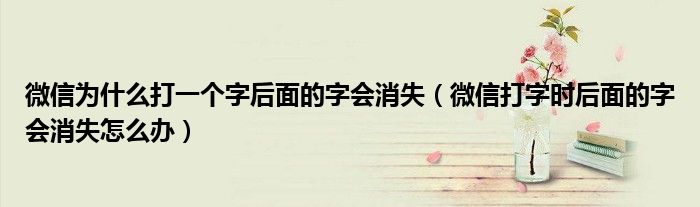 关于微信为什么打一个字后面的字会消失,微信打字时后面的字会消失怎么办这个很多人还不知道,今天菲菲来为大家解答以上的问题,现在让我们一起来看看吧!