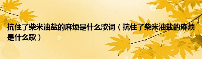 大家好,来宝来为大家解答以下问题,抗住了柴米油盐的麻烦是什么歌词,抗住了柴米油盐的麻烦是什么歌很多人还不知道,今天让我们一起来看看吧!