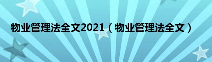 物业管理法全文2021(物业管理法全文)