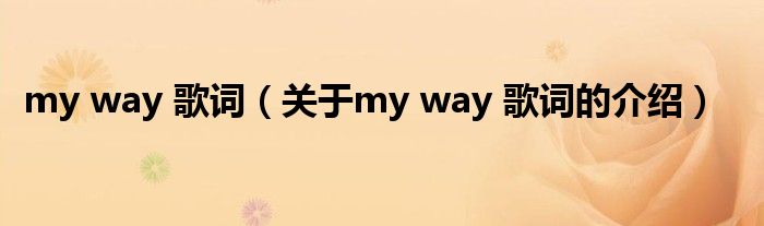 大家好,今天小乐来为大家解答以上的问题。my way 歌词,关于my way 歌词的介绍很多人还不知道,现在让我们一起来看看吧!