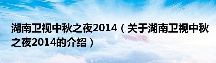 湖南卫视中秋之夜2014(关于湖南卫视中秋之夜2014的介绍)