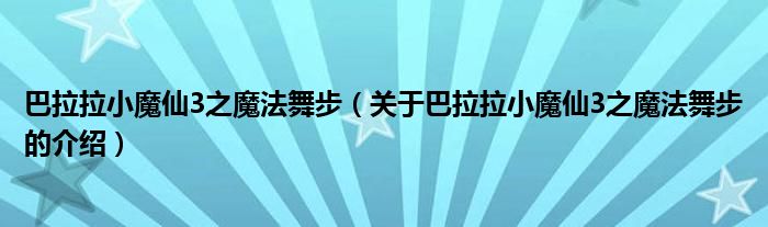 1、《巴啦啦小魔仙之奇迹舞步3(动画剧照版)》延续巴啦啦小魔仙的一贯风格,讲述了魔仙小蓝、美琪、美雪等人帮助双子座公主寻找夜星宝盒和十二星钻,使星际重新恢复秩序的故事。