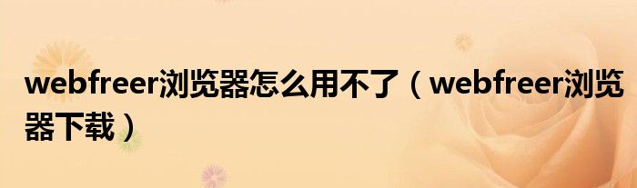 webfreer浏览器怎么用不了,webfreer浏览器下载很多人还不知道,乐乐来为大家解答以上问题,现在让我们一起来看看吧!