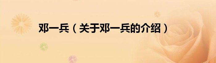 大家好,小都来为大家解答以上的问题。邓一兵,关于邓一兵的介绍很多人还不知道,现在让我们一起来看看吧!