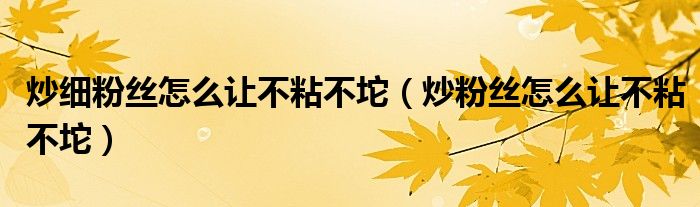 大家好,小晋来为大家解答以下问题,关于炒细粉丝怎么让不粘不坨,炒粉丝怎么让不粘不坨很多人还不知道,今天让我们一起来看看吧!