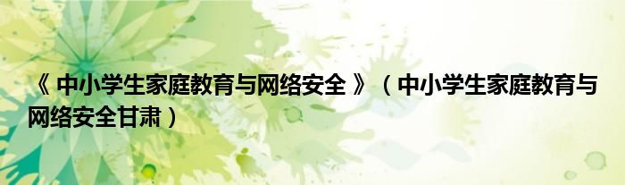 大家好,来宝来为大家解答以下问题,《 中小学生家庭教育与网络安全 》,中小学生家庭教育与网络安全甘肃很多人还不知道,今天让我们一起来看看吧!