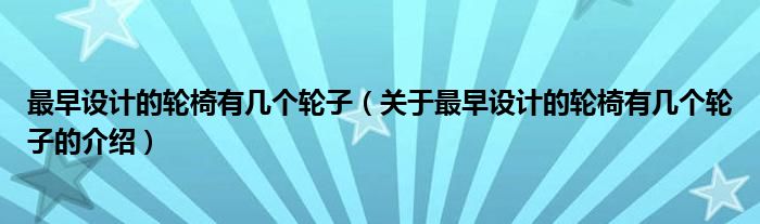 大家好,小都来为大家解答以上的问题。最早设计的轮椅有几个轮子,关于最早设计的轮椅有几个轮子的介绍很多人还不知道,现在让我们一起来看看吧!