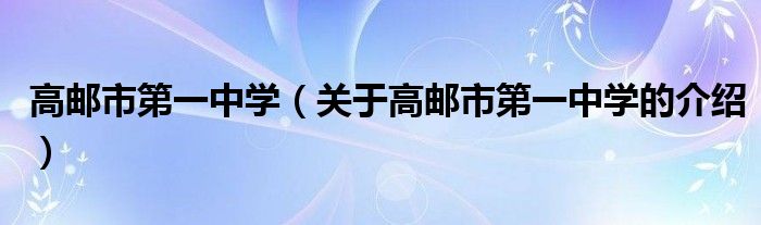 1、高邮市第一中学1964年创建,简称“高邮一中”,坐落于江苏省高邮市。