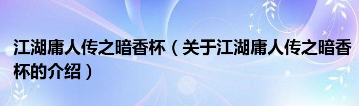 大家好,小都来为大家解答以上的问题。江湖庸人传之暗香杯,关于江湖庸人传之暗香杯的介绍很多人还不知道,现在让我们一起来看看吧!