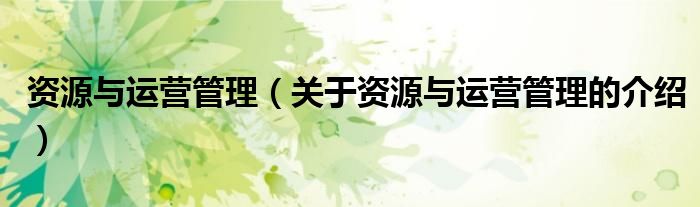 大家好,小都来为大家解答以上的问题。资源与运营管理,关于资源与运营管理的介绍很多人还不知道,现在让我们一起来看看吧!