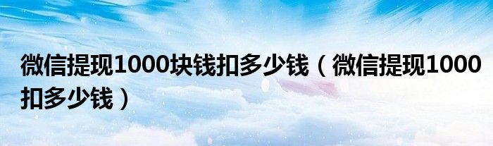 大家好,小晋来为大家解答以下问题,关于微信提现1000块钱扣多少钱,微信提现1000扣多少钱很多人还不知道,今天让我们一起来看看吧!