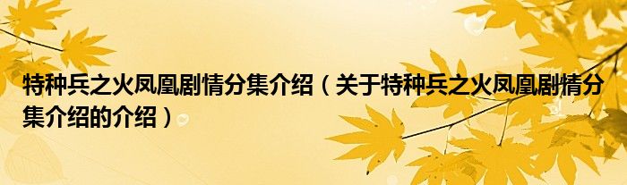 大家好,小都来为大家解答以上的问题。特种兵之火凤凰剧情分集介绍,关于特种兵之火凤凰剧情分集介绍的介绍很多人还不知道,现在让我们一起来看看吧!