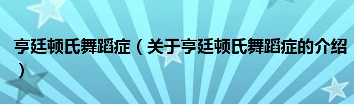 亨廷顿氏舞蹈症(关于亨廷顿氏舞蹈症的介绍)