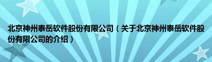大家好,小都来为大家解答以上的问题。北京神州泰岳软件股份有限公司,关于北京神州泰岳软件股份有限公司的介绍很多人还不知道,现在让我们一起来看看吧!