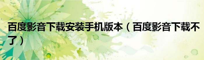 大家好,雨雨来为大家解答以上问题,百度影音下载安装手机版本,百度影音下载不了很多人还不知道,现在让我们一起来看看吧!
