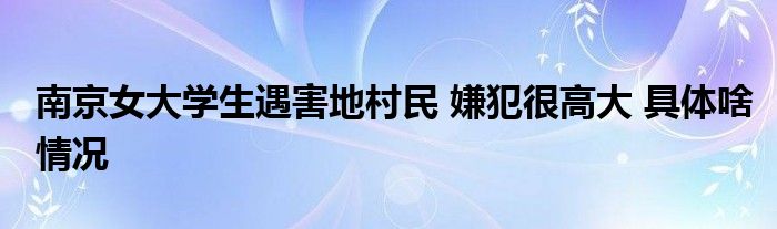 大家好.我是互联百科的羽儿,现在为大家解决以上南京女大学生遇害地村民 嫌犯很高大 具体啥情况的问题.