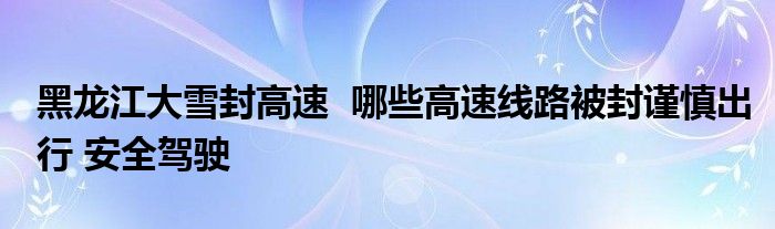 大家好.我是互联百科的羽儿,现在为大家解决以上黑龙江大雪封高速 哪些高速线路被封谨慎出行 安全驾驶的问题.