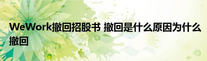 大家好.我是互联百科的羽儿,现在为大家解决以上WeWork撤回招股书 撤回是什么原因为什么撤回的问题.