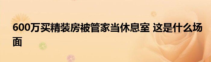 大家好.我是互联百科的羽儿,现在为大家解决以上600万买精装房被管家当休息室 这是什么场面的问题.
