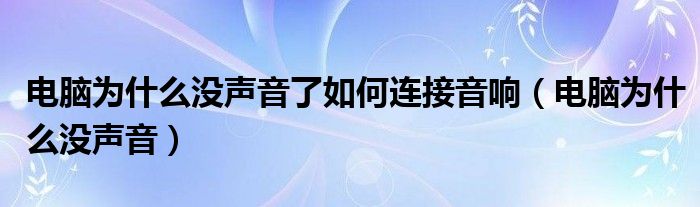 大家好,雨雨来为大家解答以上问题,电脑为什么没声音了如何连接音响,电脑为什么没声音很多人还不知道,现在让我们一起来看看吧!