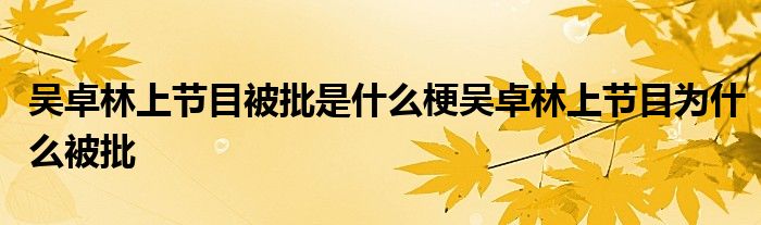 大家好.我是互联百科的羽儿,现在为大家解决以上吴卓林上节目被批是什么梗吴卓林上节目为什么被批的问题.
