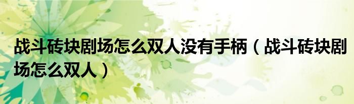 关于战斗砖块剧场怎么双人没有手柄,战斗砖块剧场怎么双人这个很多人还不知道,今天菲菲来为大家解答以上的问题,现在让我们一起来看看吧!