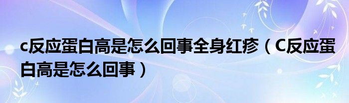 大家好,乐天来为大家解答以下的问题,c反应蛋白高是怎么回事全身红疹,C反应蛋白高是怎么回事很多人还不知道,现在让我们一起来看看吧!