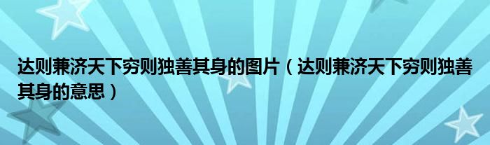 关于达则兼济天下穷则独善其身的图片,达则兼济天下穷则独善其身的意思这个很多人还不知道,今天菲菲来为大家解答以上的问题,现在让我们一起来看看吧!