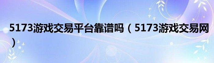 5173游戏交易平台靠谱吗(5173游戏交易网)