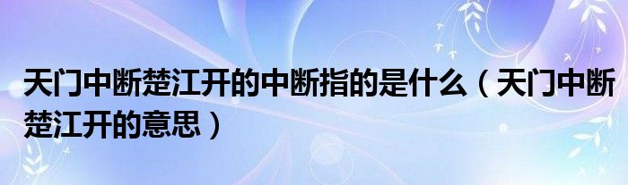 大家好,小晋来为大家解答以下问题,关于天门中断楚江开的中断指的是什么,天门中断楚江开的意思很多人还不知道,今天让我们一起来看看吧!