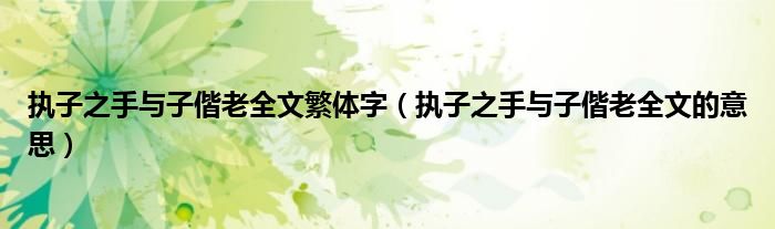 关于执子之手与子偕老全文繁体字,执子之手与子偕老全文的意思这个很多人还不知道,今天菲菲来为大家解答以上的问题,现在让我们一起来看看吧!