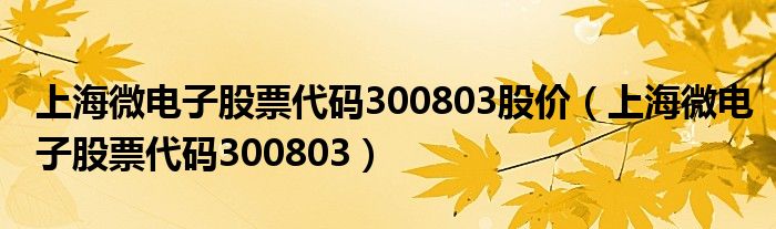 关于上海微电子股票代码300803股价,上海微电子股票代码300803这个很多人还不知道,今天菲菲来为大家解答以上的问题,现在让我们一起来看看吧!