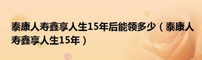 大家好,小晋来为大家解答以下问题,关于泰康人寿鑫享人生15年后能领多少,泰康人寿鑫享人生15年很多人还不知道,今天让我们一起来看看吧!