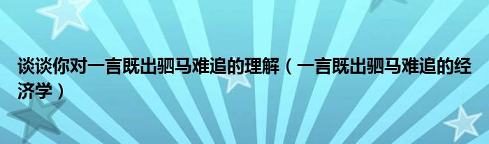 大家好,小晋来为大家解答以下问题,关于谈谈你对一言既出驷马难追的理解,一言既出驷马难追的经济学很多人还不知道,今天让我们一起来看看吧!