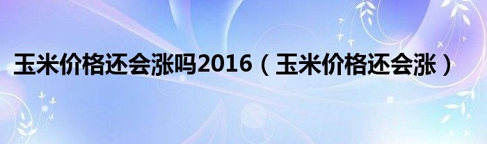 玉米价格还会涨吗2016(玉米价格还会涨)