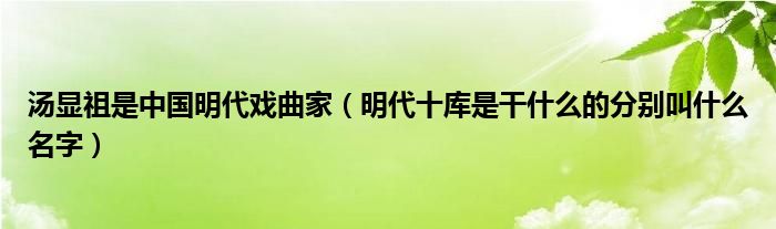 关于汤显祖是中国明代戏曲家,明代十库是干什么的分别叫什么名字这个很多人还不知道,今天菲菲来为大家解答以上的问题,现在让我们一起来看看吧!