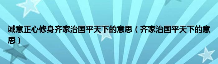 关于诚意正心修身齐家治国平天下的意思,齐家治国平天下的意思这个很多人还不知道,今天菲菲来为大家解答以上的问题,现在让我们一起来看看吧!