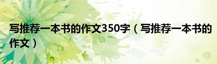 关于写推荐一本书的作文350字,写推荐一本书的作文这个很多人还不知道,今天菲菲来为大家解答以上的问题,现在让我们一起来看看吧!