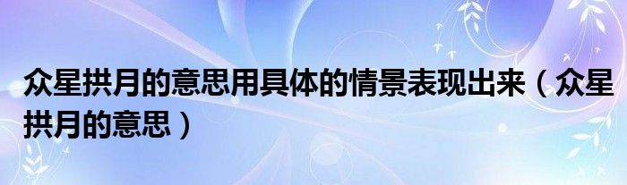 关于众星拱月的意思用具体的情景表现出来,众星拱月的意思这个很多人还不知道,今天菲菲来为大家解答以上的问题,现在让我们一起来看看吧!