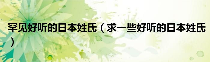 关于罕见好听的日本姓氏,求一些好听的日本姓氏这个很多人还不知道,今天菲菲来为大家解答以上的问题,现在让我们一起来看看吧!